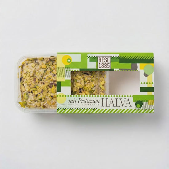 Delicious halva from Turkey 227g – Sugar-free tahini halva with date extract – 60% sesame paste – Gluten-free – No glucose syrup, palm oil & artificial sweeteners – Halwa (pistachio)