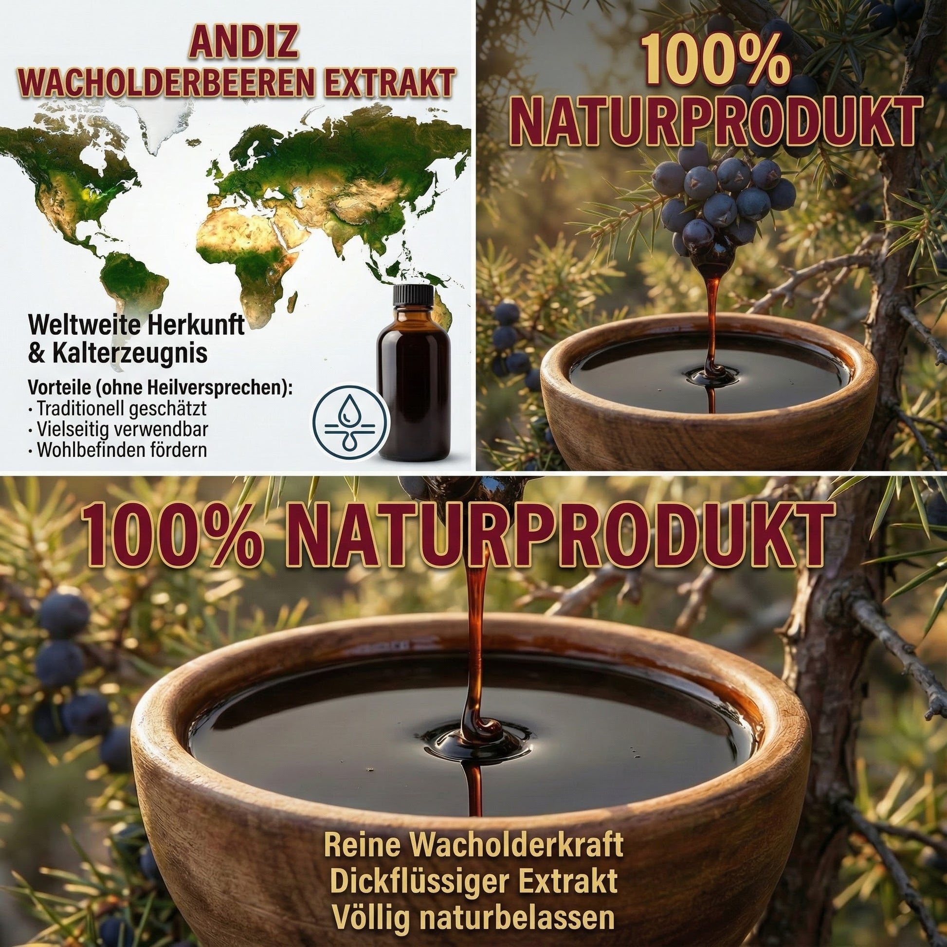 - ✔ Wacholderbeeren-Extrakt – Kaltgepresst & traditionell hergestellt Der Wacholderbeeren-Extrakt wird schonend kaltgepresst und nach traditionellen Methoden hergestellt. Durch die Kaltpressung bleiben die natürlichen Eigenschaften der Wacholderbeeren bestmöglich erhalten – ohne Hitze, ohne chemische Verarbeitung und ohne Zusatzstoffe.