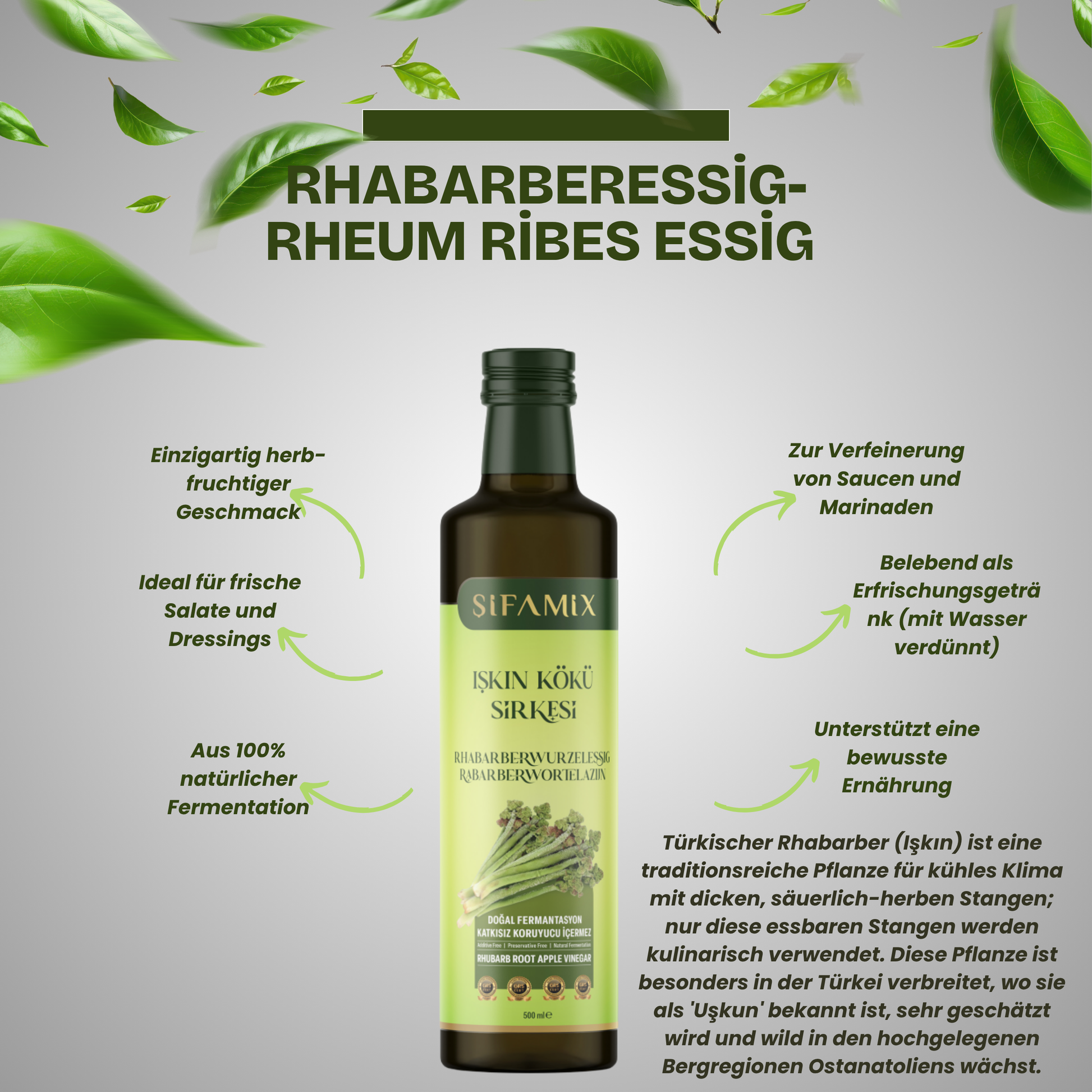 - Was ist das? 100% natürlich fermentierter Rhabarberwurzelessig aus der Işgın-Pflanze, traditionell angebaut in den Bergen Anatoliens. Handwerklich hergestellt für reinen, unverfälschten Geschmack.